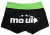 - Low rise style | foldover waistband | short shorts (1.75" - 2.5" inseam) | screen printed "maui" and Hawaii chain of islands on the back of the shorts